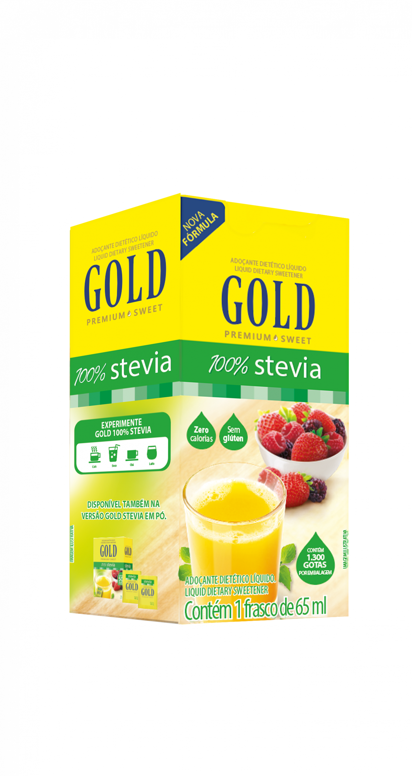 De origem natural a stevia tem o potencial de dulçor de 200 a 400 vezes maior do que o açúcar de cana. Gold oferece um adoçante 100% stevia com sabor leve e agradável.