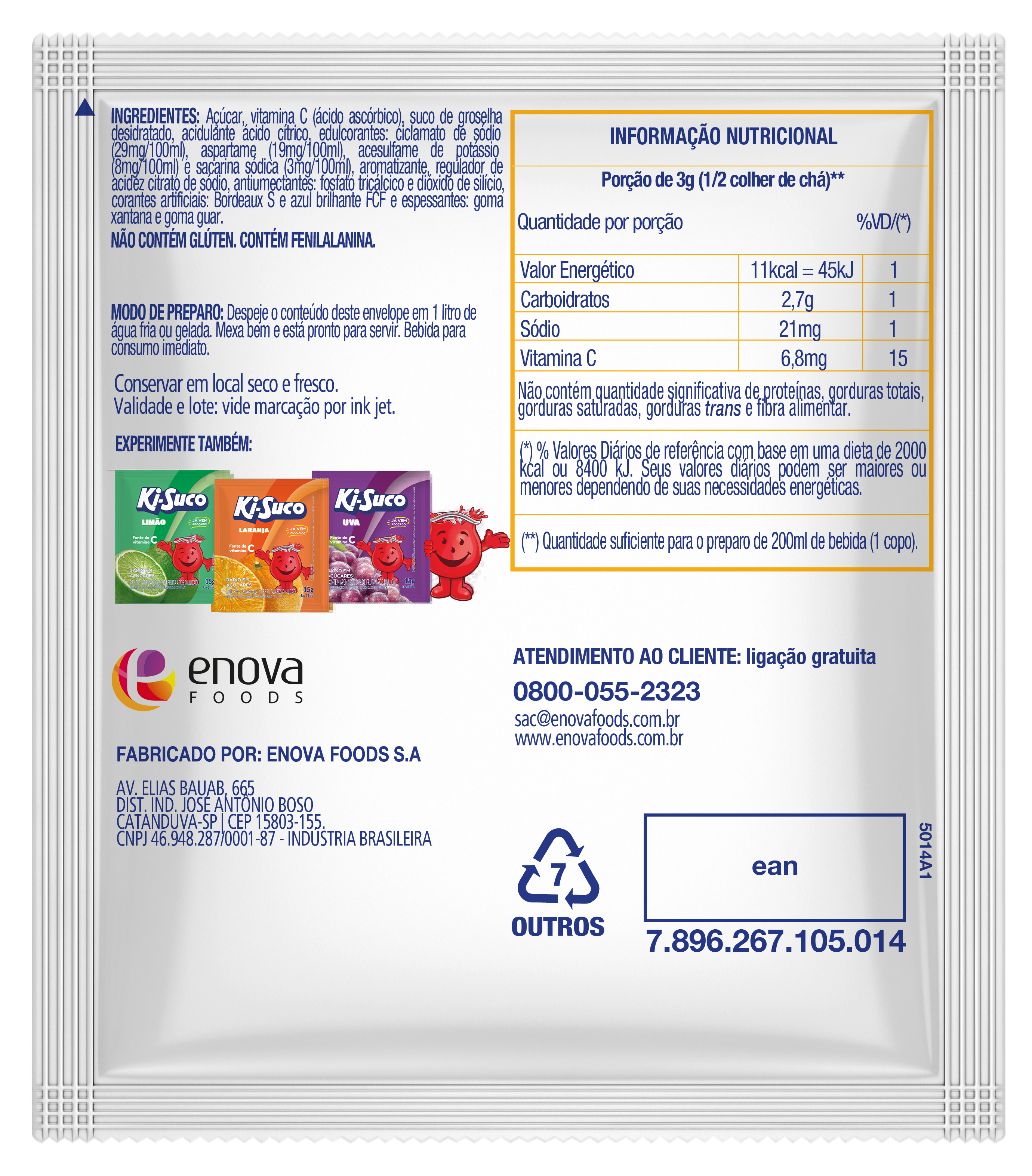 Açúcar, vitamina C (ácido ascórbico), suco de groselha desidratado, acidulante ácido cítrico, edulcorantes: ciclamato de sódio (29mg/100ml), aspartame (19mg/100ml), acesulfame de potássio (8mg/100ml) e sacarina sódica (3mg/100ml), aromatizante, regulador de acidez citrato de sódio, antiumectantes: fosfato tricálcico e dióxido de silício, corantes artificiais: Bordeaux S e azul brilhante FCF e espessantes: goma xantana e goma guar.